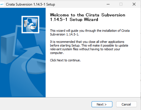 ここでは、"CirataSubversion_1.14.5-1_apache_24"を実行します。