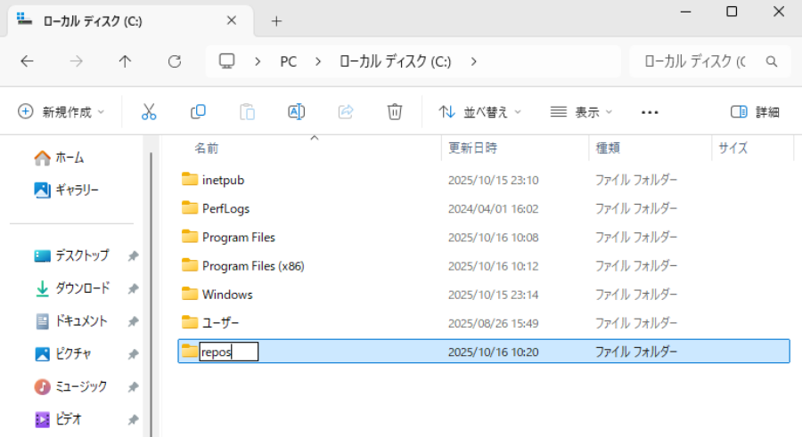 Repository Directoryは、上記で作成したフォルダを指定(ここではC:\repos)。